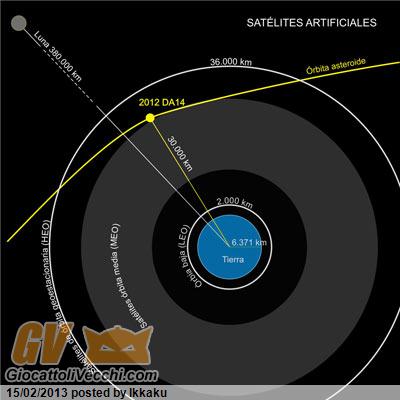 cmq stavo leggendo qui su un altro periodico, che stasera tra le 19 e le 20 passerà vicinissimo alla Terra un asteroide il 2012 DA14 .... a "soli" 27000 km di distanza.