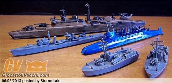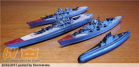Le Navi... notate la magnifica colorazione di quelle Atlantic, è opera mia. Da notare la foto degli aerei con l`idrovolante. E` un giocattolo veramente vecchio, ricordo di mio padre, anni 40.