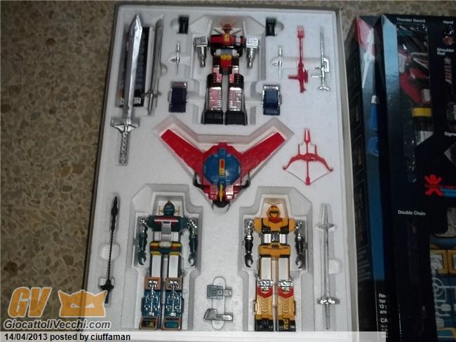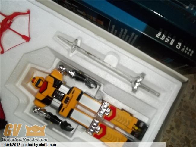 Chiedo valutazione per questo God Sigma Dx versione Godaikin, scatola in ottime condizioni, robots e accessori perfetti, le cromature delle tre spade come da foto hanno perso un pò dello scintillio originale...