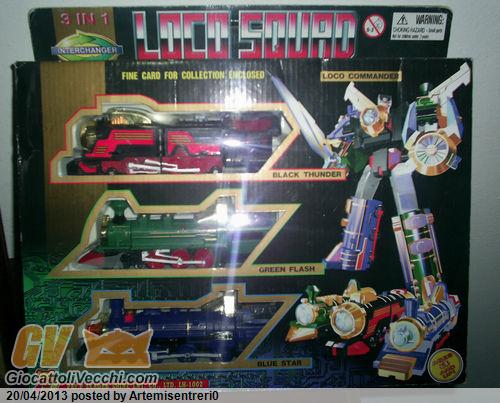 comincio io con un componibile comprato tempo fa, il Loco squad, ho visto che eisite anche il tarocco del tarocco (thomas) ma non so se appartenga a qualche serie. Si tratta di tre treni che unendosi formano un robot molto sfizioso