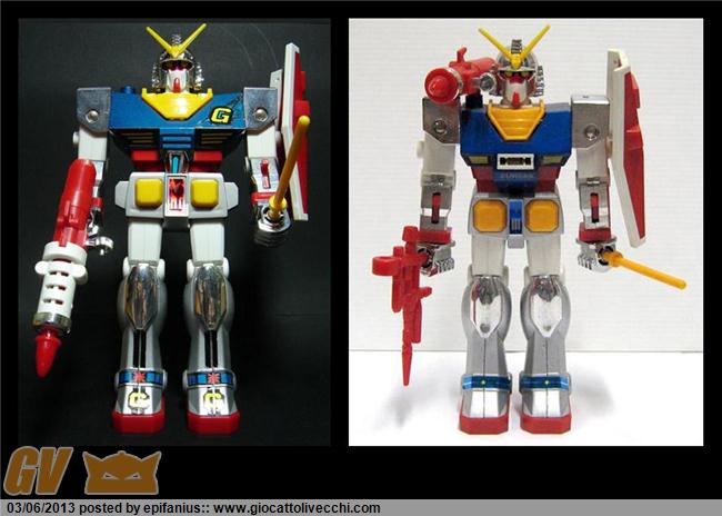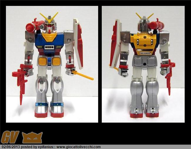 io avevo da piccolo l`rx78 standard, ero davvero piccolo per capire chi fosse (come avevo anche il daimos tranzer, non trasformabile, aaargh eresia!). Poi ricordi successivi lo vedono del tutto senza diadema e pezzi. Chissa`se non furono i miei a tenermelo in modo spartano per non farmi far male magari nella loro ingenuita` (sono cosi`metallosi che basta sbatterselo giocando su una mano per schiacciarsela!!!). Alla fine, grazie ad un fortuito ritrovamento ho il ceppi ratti "gattai" che ho preferito al dischi dal petto, sara`piu`tozzo degli altri ma se non altro si scompone!