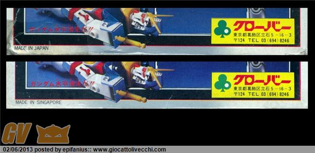 Nella versione MADE IN JAPAN, le scritte in giapponese riportanti logo e specifiche tecniche della Clover, sono realizzate in rilievo sotto gli zoccoli dei piedi. Nella versione MADE IN SINGAPORE (anche quella distribuita dalla Ceppi Ratti) Il logo e le specifiche tecniche della Clover sono realizzate sempre in rilievo, ma questa volta sullo zainetto giallo, dove la scritta SINGAPORE può essere presente, in rilievo, sotto forma di adesivo o, addirittura, assente.