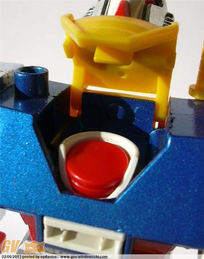 La testa è, però, fissa. I missili, così come i pugni, vengono espulsi grazie al classico meccanismo a molla azionato da una levetta in plastica. Le spalle possono ruotare sul busto a 360°; i gomiti permettono una piegatura dell’avambraccio limitata a 60°, mentre per le ginocchia la rotazione è limitata addirittura a 30°, per non permette un eccessivo sbilanciamento del toy che ha un busto pesante. Sui talloni e sullo zainetto sono applicate rotelline metalliche per permettere al robot lo scorrimento su una superficie piana, quando è sdraiato sulla schiena.