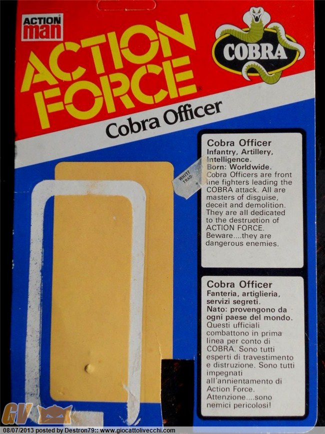 Recentemente sono entrato in possesso di un Cobra Officer in versione Action Force loose, del quale però il venditore aveva conservato la card. Premetto che non avevo mai visto nessuna di queste card e che la serie Action Force per me è sempre stata un po` una sorta di mistero.