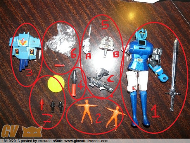 Ciao, dovrei riconoscere alcuni accessori missili e parti, per facilitare ho contraddistinto con numeri. il robot mi sembra un gordian junior set con la sua spada, il resto c`è qualcosa del gattiger ma non sò cosa. grazie
