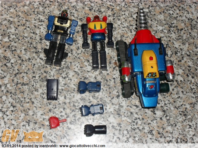 i due pugni blu sono del god sigma st, il rosso sembra del delinger (gordian dx)...il primo robot é il leopaldon, il secondo il getta poseidon, entrambi versioni piccole della linea shogun warriors