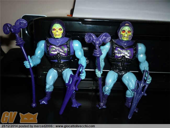 Personalmente ho avuto dei momenti in cui ho comprato continuamente, altri in cui ho avuto periodi di pausa, altri in cui per mancanza di fondi non ho potuto comprare; Ma ho sempre cercato di valutare bene le situazioni, facendo anche fede su ciò che ho imparato negli anni e soprattutto avendo la fortuna di potermi confrontare con collezionisti davvero bravi e davvero onesti di cui mi fidavo e mi fido sempre più come: Giuseppe, Alessio, Dani...ecc...Poi ho avuto la fortuna di conoscere persone che mi hanno fatto conoscere persone, che mi hanno fatto conoscere persone...ecc...Un pò come è normale che capiti ad ogni collezionista...... Ma il bello del collezionismo è appunto l`incertezza che tutti noi abbiamo e non la certezza che nessuno può avere....Riferendomi ad una cosa recente, quando mi hai chiesto di quel man at arms con i baffi ti ho risposto con stupore poichè, volendo fare una battuta, non so quante volte te lho detto..... Quella è una variante molto particolare, davvero particolare e non affatto comune, come del resto una miriadi di varianti che qui ognuno di noi ha postato...........E pensa che di maa estrela ce ne sono almeno 3......... Poi sono passati i giorni e notavo come la questione top toys si è espansa...Ecco per esempio la domanda che tu facesti sulle teste marchiate Taiwan...Ottima osservazione che ha trovato riscontro positivo, e questo permettimi di dire grazie a te. Proprio poco fa chiedevo ad Alessio di controllare le armi del BA skelly top toys con quelle dello skelly top toys standard...Mi sono chiesto: ci siamo mai posti questo quesito come abbiamo fatto con gli standard? E tu dovresti ricordare...Ho preso una spada dello skelly top toys BA ed una dello skelly top toys standard ed in effetti la differenza c`è e si nota....Intanto posto uno dei miei ultimi arrivi, uno dei tanti skelly top toys BA a confronto con lo standard: