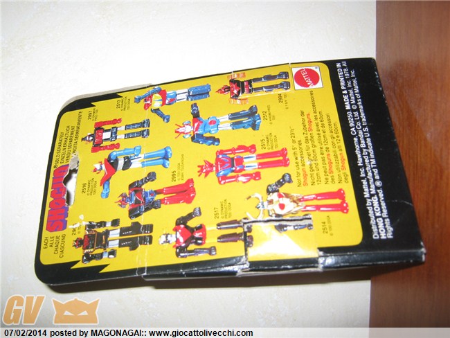 Grande Mazinga mini Shogun Warriors, completo di scatola, uscito solo per essere fotografato, unico difetto la linguetta dello scatolino è staccata, per il resto è tutto ok, sulle spalle di Mazinga la scritta a rilievo "Hong Kong". Chi lo conosce non ha bisogno di ulteriori descrizioni.