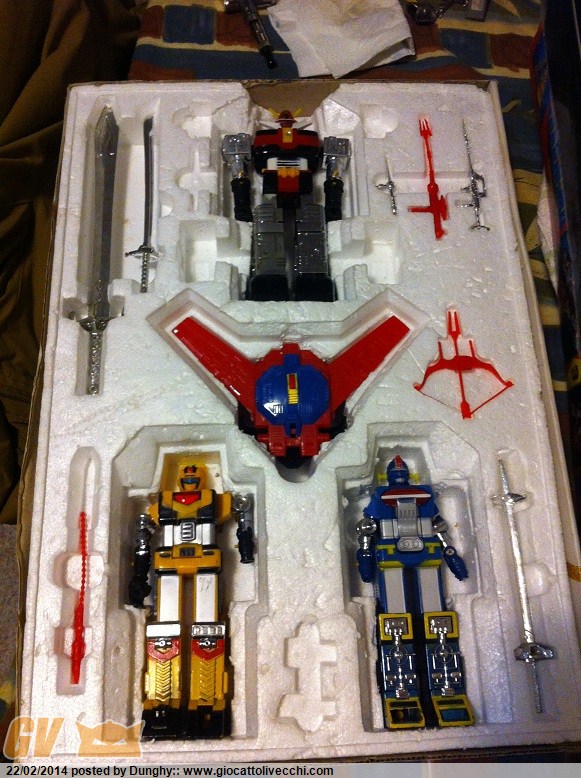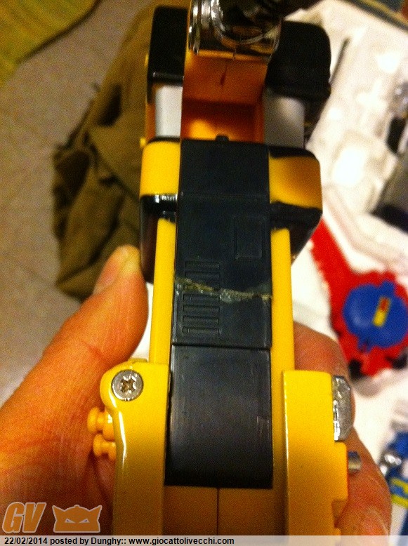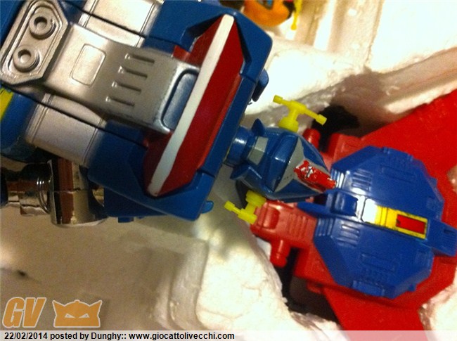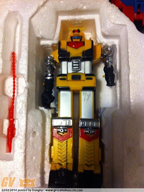 Ad esempio il robot Tuono , presenta sulle ginocchia i colori in tinta con la mutanda per la trasformazione ed i corni gialli sono in gomma morbida .