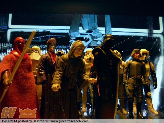 I personaggi vintage li ho tutti, le versioni normali, non ho le varianti strane e rare (tipo il Jawa con il mantello di plastica, per dire). Non li tengo in una vetrina, ma in una teca di legno appesa al muro. Purtroppo lo spazio è tiranno e non mi consente una vetrina anche per loro. Se vuoi vederli, li trovi nelle foto della mia collezione, sono giusto all`inizio.