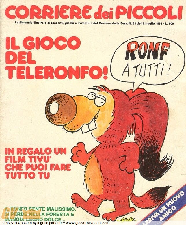 Il Corriere dei Piccoli (1908-1995) sfornò personaggi come il signor Bonaventura, il Sor Pampurio, Marmittone (riproposto negli anni 70` dal giornalino Miao) e molti altri. Quelli della nostra generazione invece ricordano la Pimpa, la Stefy...ed i mitici Ronfi. Oggi i Ronfi compiono 33 anni. Il primo ep. del Corriere dei Piccoli che li vide protagonisti è datato 31 luglio 1981. Ep. nr. 31.