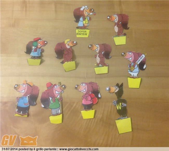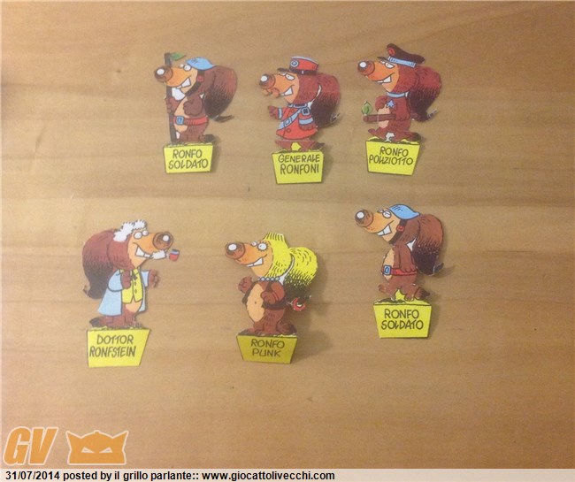 a) Storie dei Ronfi "selvatici": questi Ronfi vivono nel bosco, in comunità, in un villaggio di casette molto semplici, sorta di tane appena un po` più evolute. Si nutrono prevalentemente di legno dolce e devono difendersi costantemente dai tentativi di aggressione dei lupi (vedi la voce Lupo). Nel bosco dei Ronfi vivono, naturalmente, anche gli animali "canonici" che partecipano alle avventure in funzione di comprimari: tra gli altri, un saggio topo, un Orso paziente, un pennuto nero (probabilmente un picchio) dall`aria scettica e palesemente infastidita da quanto accade; e poi, laboriosi e un po` saccenti Castori, vispi scoiattoli, gatti selvatici di pessimo carattere, conigli mattacchioni e chiacchieroni ecc... L`avventura-tipo dei Ronfi si snoda generalmente secondo questo schema: