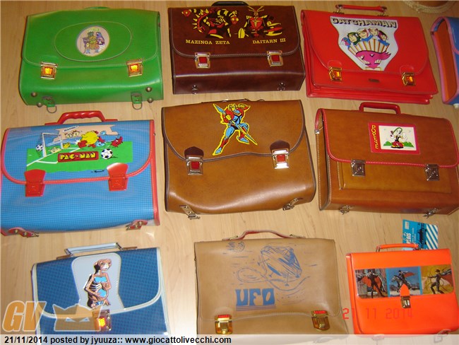 La prima che ebbi da bimbo fu una cartella marrone con Goldrake ( sono del 74 ), mentre la seconda cartella, con la quale ci feci tutte le elementari, era bianca con bordi azzurri, e al centro aveva un ovale con l`immagine della Hayabusa e di Ken. Complimenti per la collezione, sono veramente bellissime e scaldano i ricordi
