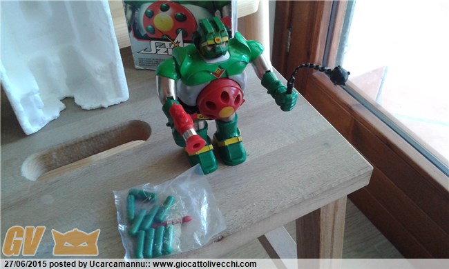 ciao a tutti. il personaggio sembra in ottime condizioni con tutti i suoi accessori e missili. giusto la scatola come da foto....