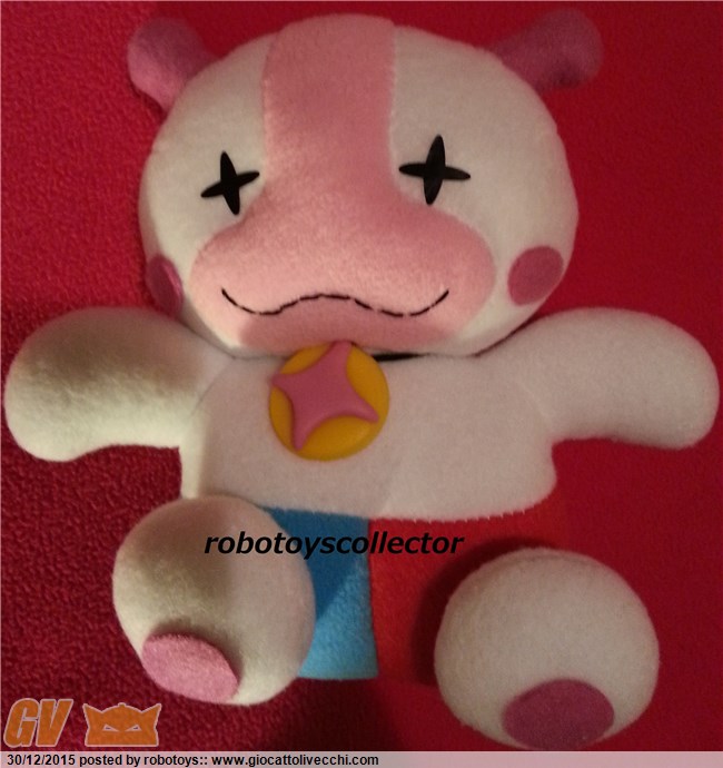 Anni fa ad una fiera ho trovato uno che era fatto benissimo e somigliava veramente moltissimo all`originale allora ne presi uno!! Le dimensioni sono simili a quello dell`anime , l`unica cosa che manca sono dei ferretti interni alle braccia per poterlo mettere sul braccio ^_^ molto simpatico!!