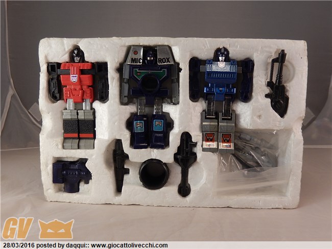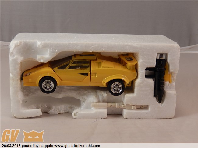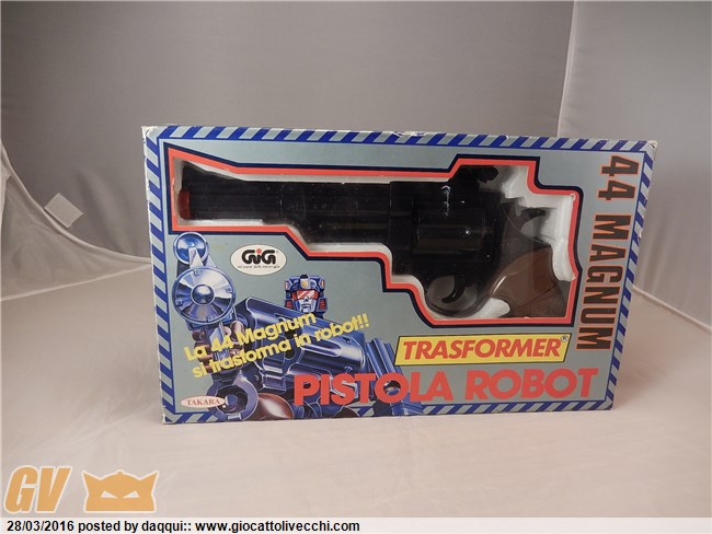Per quanto riguarda il discorso sulla tiger-track dico che si tratta, come già anticipato dal buon orguss, dell`auto più rara in scatola gig seconda sola alla bluestreak di cui si hanno ormai prove certe circa l`importazione in Italia. Io credo che 500 per com`è tenuta la tua (parlo delle condizioni del solo giocattolo con accessori) sia una cifra ragionevole. Volendo ampliare il discorso alla questione vale più della corvette bè forse si in quanto se ne vedono meno proprio come numero, parlando delle loose, ma se vogliamo fare un discorso meramente di confronto tra quotazioni non v`è dubbio che risulta più difficile trovare una corvette in scatola completa anche di istruzioni perchè la scatola e le istruzioni della lambo gialla sono le stesse di quella rossa ch`è decisamente uno dei diacloni più comuni. Il valore quindi lo fanno la scatola e le istruzioni. Per quanto riguarda la 44 magnum se è adesivi da attaccare puoi provare anche 450 euro anche se la tua è stata sicuramente estratta dal poli poichè risulta cominciato il posizionamento della testa del robot. Comunque complimenti è un pezzo magnifico. Infine per quanto riguarda le tre auto: il grapple direi 30-40, la hilux è un pezzo molto comune ma la tua è ben tenuta non saprei comunque darti un`indicazione infine la fairlady police prowl dipende da come è marchiata ed il tettuccio rotto comunque non indice in positivo sulla valutazione. Spero nel mio piccolo di esserti stato utile.