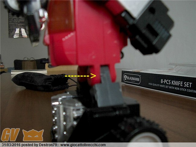 - Road Caesar: mancano le tre spade e la testa del robot gigante. Adesivi e giunture tutti perfetti, unico difetto lo si vede nell`ultima foto: una microscopica crepetta nella plastica della gamba di Blacker. Bisogna fare un po` attenzione, ma non impedisce di trasformare il robot.