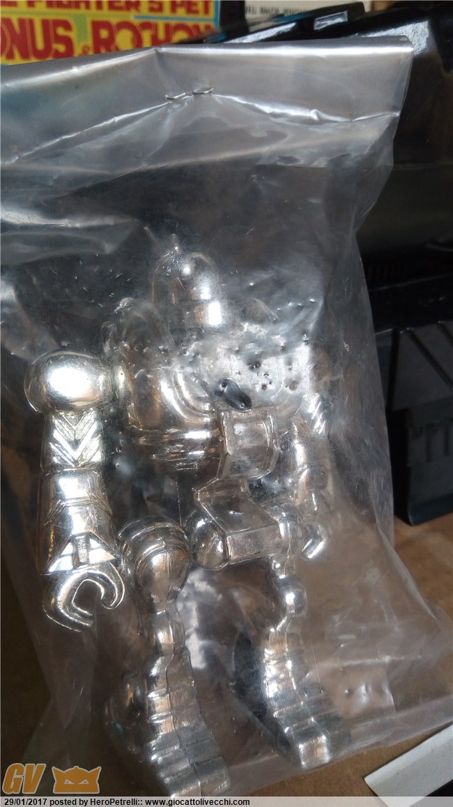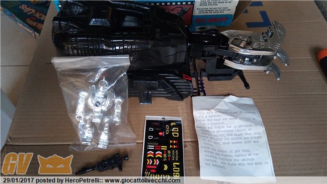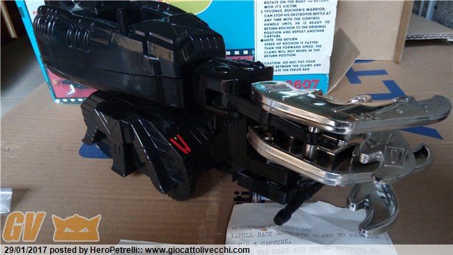 sotto il robot principale c`e il marchio "glacier 1986".ottima fattura nonostante tutto, la plastica ha il suo peso e i meccanismi sono molto robusti, i movimenti che può fare magari non si notano dalle foto, ma sono a 360 gradi per i braccio meccanico e 360 gradi di giro attorno a se stesso, lo scatto della morsa è forte e veloce, avrei paura a metterci la mano.