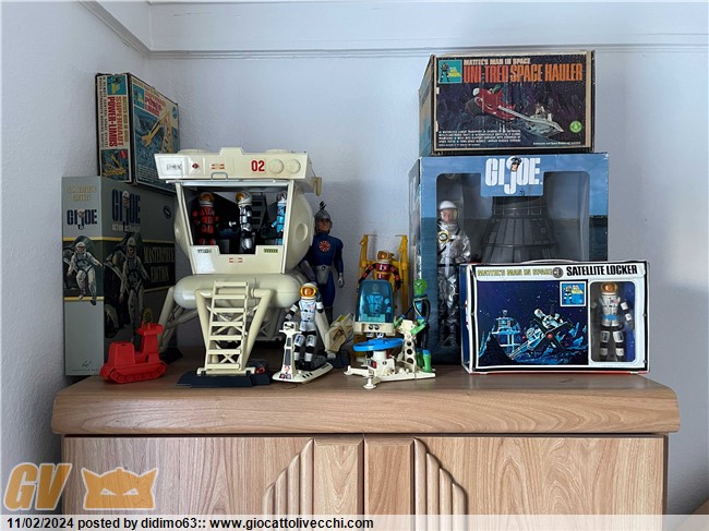 Aggiornamento dopo quasi sei anni, la mia collezione di Major Matt Mason in USA e` sana & salva nel nuovo appartamento in Alabama (insieme al modulo lunare dello spagnolo Madelman, che e` delle dimensioni giuste, 8 pollici). Il resto e` a casa mia a Asti.