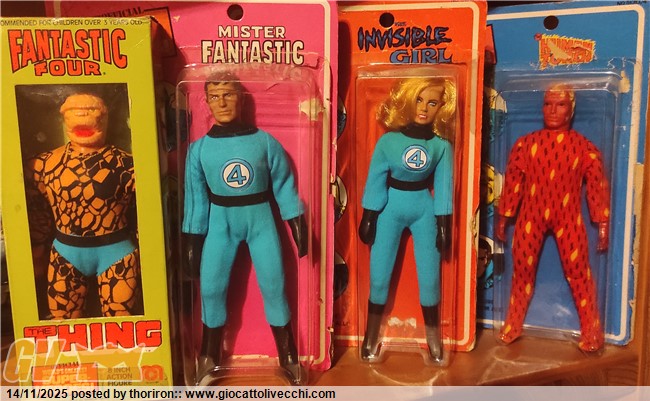 Aggiornamento Mego....arrivati anche loro i Fantastici Quattro con la Cosa in versione box la donna Invisibile con il viso perfetto in card (molte di queste hanno il famoso viso zombie cioè scolorito ed ingrigito soprattutto la versione PinPin francese che ho in collezione) mr. Fantastic e la Torcia sempre in card
