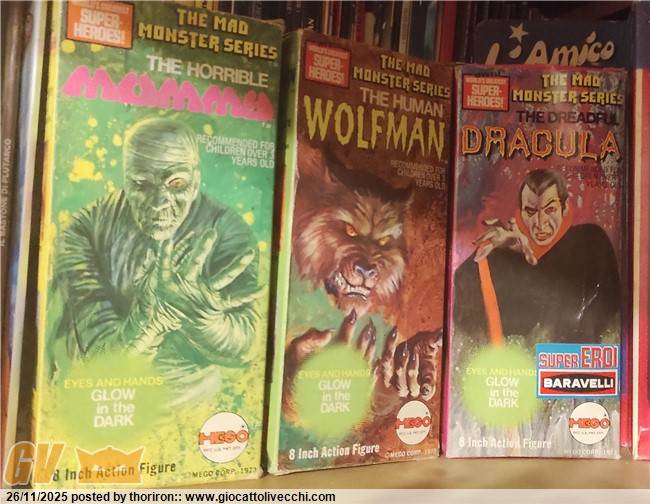 Questo, per me , è un aggiornamento della mia collezione che ritengo importante....La serie mad Monsters Mego in box (loose li avevo già ), scatole davvero stupende, disegni fantastici e , nel caso di Dracula addirittura il famoso adesivo Supereroi Baravelli che a mio modesto parere lo impreziosisce....Adesso mi manca solo Frankenstein in box.....