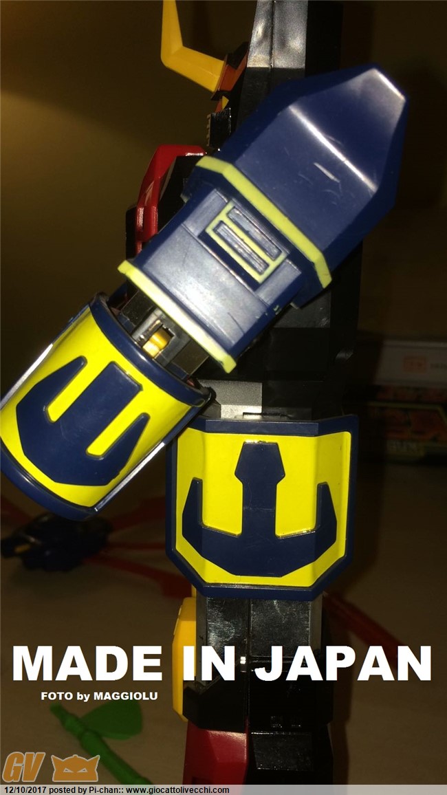 ...io ne possiedo uno preso LOOSE uno squanterno di anni fà, e confrontandolo (in fotografia, non fisicamente) con un MADE IN JAPAN, scritto sul box, ho notato che le plastiche degli scudi nei bracci e sui fianchi del mio, sono più chiare... La scritta in caratteri gapponesi nella schiena invece sono identici...