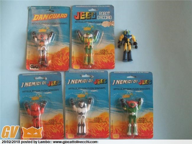 Salve ragazzi , chiedo ai più esperti una valutazione di questo raro Danguard New Gio.co ( o meglio , venduto insieme alla serie dei New Gio.co , con lo stesso blister , identico in tutto e per tutto ma con il marchio GIG .... cosa davvero strana ma ne ho trovato conferma anche in una discussione qui stesso su GV .... magari rimetto la foto dell`anomalo blister a fine messaggio ;) . Come si vede dalle foto manca un polsino e tutti e due i pugni , facilmente reperibili dai tanti robot tarocco tipo space robot , guerrieri spaziali ecc. almeno fino a trovare i pezzi originali da qualche rottamino. Sta in piedi con difficoltà come tutti i suoi fratelli giocati , però una volta posato si regge bene .... ha ancora la molla originale fra le gambe ;) le maggiori perdite di vernice si evidenziano sulla schiena , e sul davanti nella zona bassa del gonnellino .... le gambe invece hanno tenuto alla grande , sembrano belle nuove !! anche la testa non ha subito particolare scoloritura . L`adesivo sul petto ha una piccola macchia circolare nera sul colore rosso , ovviamente non oso pulirla , di sicuro si scolorirebbe tutto hehehe . A mio avviso nel complesso si presenta bene , considerando che il Danguard è il più raruccio da vedere in giro che prezzo di vendita sarebbe onesto ? Grazie anticipate , saluti ;)