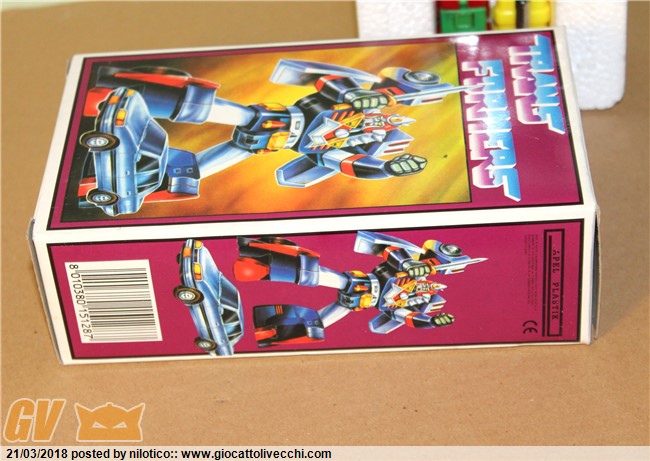 Ciao a tutti, chiedo informazioni su questo tarocco abominevole trovato qualche giorno fa... La scatola è italiana e precisamente napoletana perchè marchiata Apel Plastik su un lato ma il robot dovrebbe essere made in China visto che ho trovato una foto di un collezionista che ce l`ha identico ma in blister americano marchiato made in China. Si tratta del tarocco del Voltron Look Out Binoculars della Impulse quindi un prodotto pseudo ufficiale.. Quello che mi chiedo è uno: questo Voltron circolava veramente in Italia in questa scatola "Trans Formers" oppure il negoziante ha fatto un mischione? Devo dire che il polistirolo è pertinente al Voltron in quanto ha la sagoma del robot e due: quando potrebbe essere stato fatto questo tarocco? Il codice a barre e il marchio CE sembrerebbe indicarmi un periodo post 1989 ma potrei sbagliarmi. Come ultima cosa chiedo delucidazioni sull`immagine del Transformer in copertina.. chi potrebbe essere? Chiederei anche il valore di questo abominio ma credo proprio che siamo su cifre molto molto basse... poi chissà.