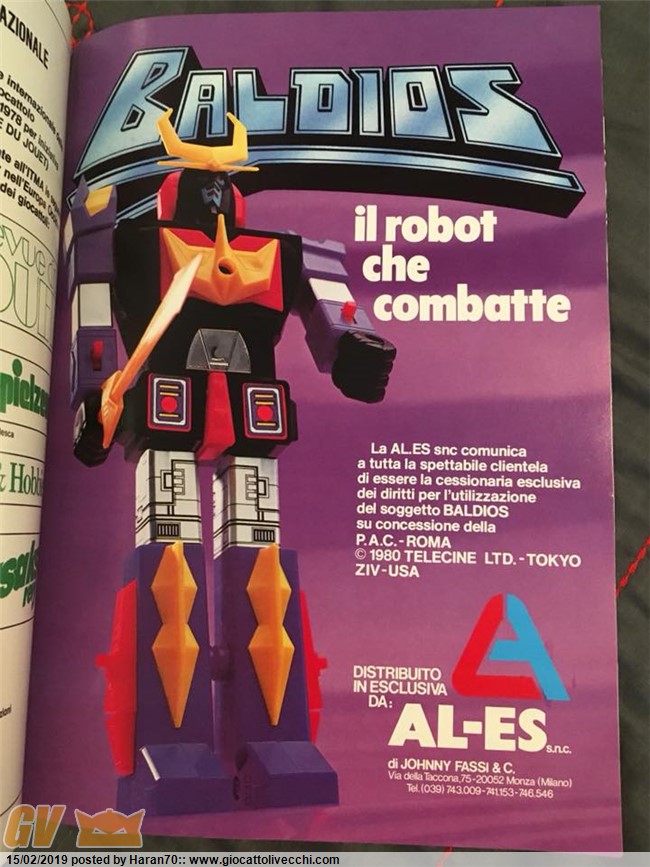 Era in pratica un soppalco sopra gli uffici in cui erano stipati tutti quei toys giapponesi che noi, come ieri oggi e domani ci battiamo per averli nella nostra collezione, quindi dalla ditta AL-ES (sempre di Monza) potevo ammirare Daitarn 3 e Baldios, oltre che tutti i POPY e TAKATOKU che noi tanto desideriamo, ma non mancavano i Ceppi Ratti, ancora per me pieni di fascino e nostalgia... e di ricordi legati al più bel regalo che ricevetti da mio padre, un Natale del 1983... un Trider G7 DX Clover tutto per me... (che mi guardavo e rigiravo prima di dormire, altro che peluche!!!) senza contare il Daitarn 3 Battery Operated della Clover, beh insomma non mi meraviglio di tutto quanto abbia ricevuto, mio padre aveva veramente degli ottimi gusti....anche in fatto di toys!