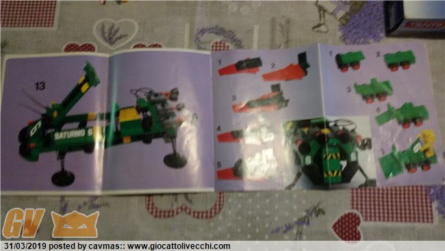 Il set permette (ahimè senza dare istruzioni) di realizzare con gli stessi pezzi una sorta di base spaziale verticale. Vi era un alter-ego della Saturno 6, la Orion 3, più rara. La trovate nella foto del libretto di istruzioni.