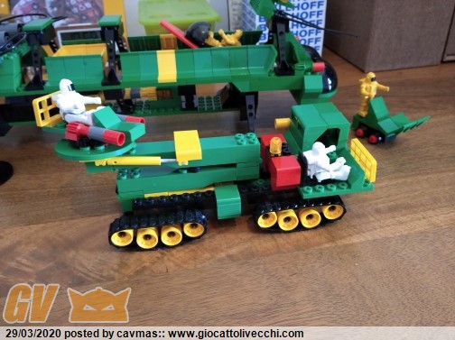 Il pezzo in mio possesso era un MINT con sacchetti interni ancora sigillati: ma - crepi la collezionaggine - non mi disturba averli aperti e montato questo veicolo per condividerlo con voi, oltre che aver giocato con mia figlia. Basti sapere che cingoli così nuovi e perfetti non ne ho mai visti: avevano "trasudato" all`interno del sacchetto, così che io e mia figlia abbiamo dovuto pulire tutti i pezzi uno per uno.