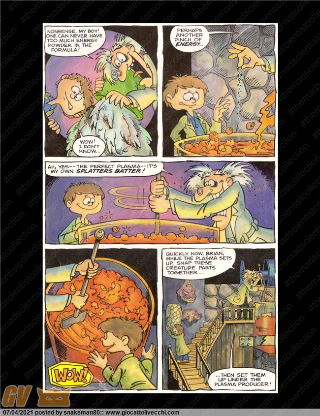 Il fumetto incluso nel manuale degli esperimenti del set SPLATTERS (inedito in Italia) è sicuramente il meno conosciuto e il più difficile da reperire proprio perché associato a un kit piuttosto raro, discontinuo e quasi mai completo quando lo si trova. Ho deciso allora di condividerlo e di far conoscere a chiunque desideri leggerlo questo esilarante e disgustoso episodio a fumetti! Questo manuale è inoltre l`unico sulla cui copertina compare il giovane assistente Brian insieme al Dr. Sy, mentre su tutti gli altri troviamo sempre lo scienziato pazzo da solo. Semplicemente mitico. Buona lettura!