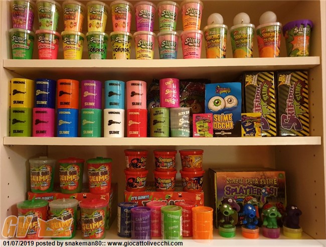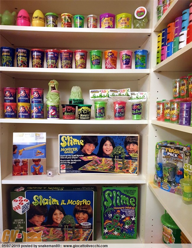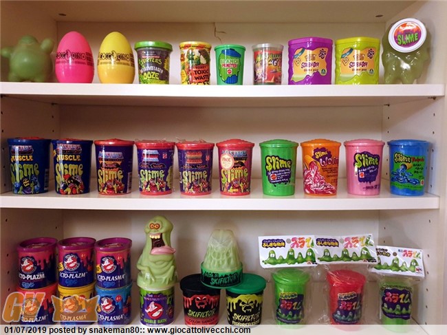 Molliccio, viscido, sfuggevole e senza tempo! Dall`originale Mattel creato negli anni `70, passando per il boom degli anni `80 e fino al rilancio moderno, lo SLIME continua ad affascinare (e ovviamente disgustare) generazioni di appassionati! Uno dei miei giochi preferiti di sempre, soprattutto quando impiegato in set come Mad Scientist, Ghostbusters , Dr Skifilt & co. Questa è la mia personale collezione, sempre in crescita come un gigantesco Blob!