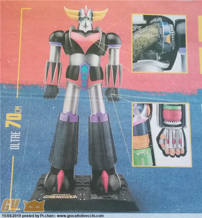 Ciao, ho appena letto che dal 27 agosto uscirà con la gazzetta un imponente Goldrake da 70.cm con metà in trasparenza che permette di vedere i meccanismi interni e sarà dotato di luci a led. 60 uscite ed un costo totale che si aggira sui 540 euro. Se qualcuno può e vuole postare foto...io purtroppo non riesco...