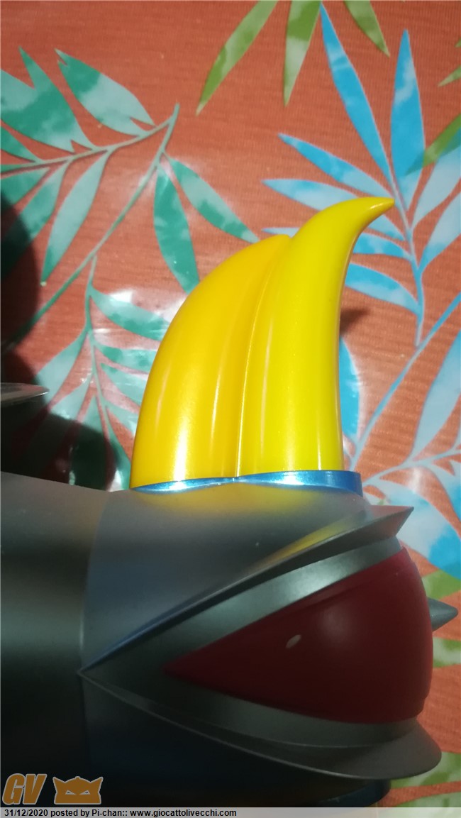 L`esempio più lampante di come cambia questo modello a seconda della colorazione delle corna, lo si può vedere nel Goldrake con questa testa ricolorata da Simo. Già la doratura ne valorizza le linee e gli conferisce profondità e personalità.