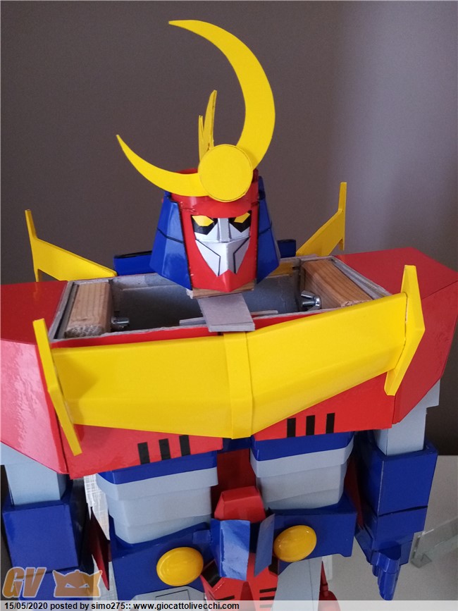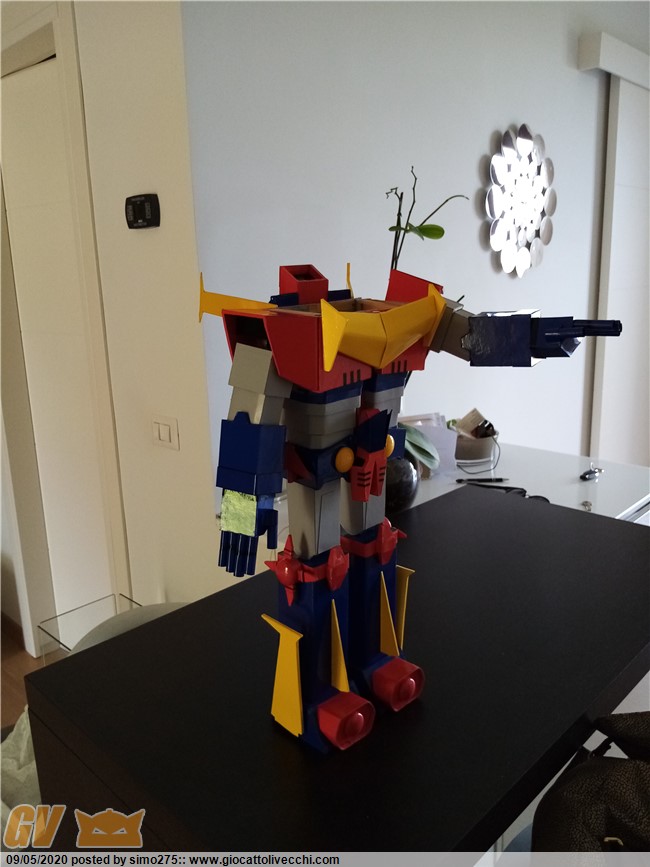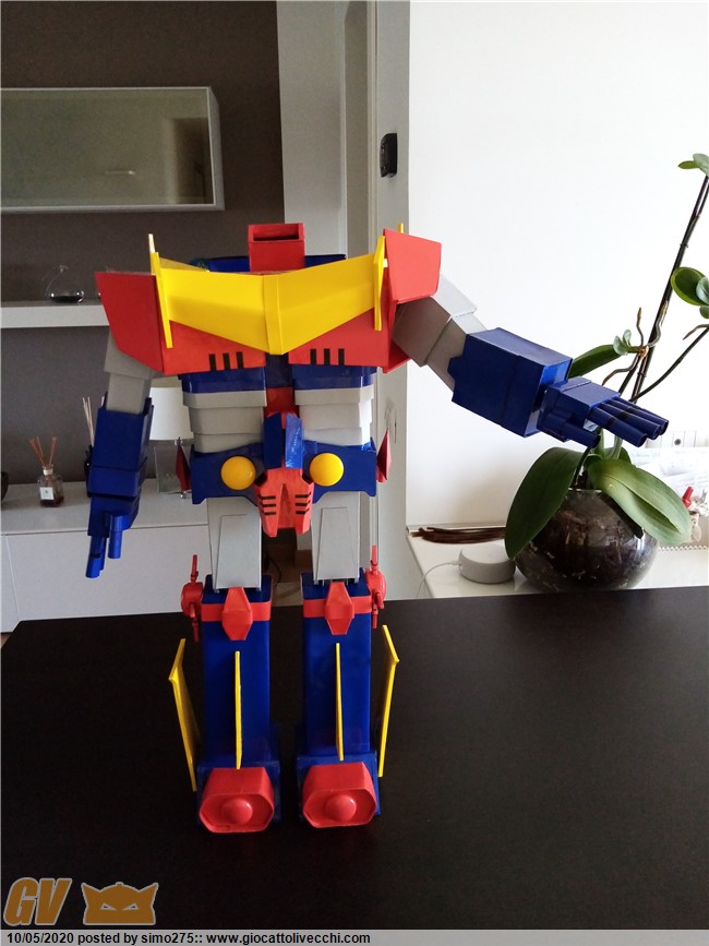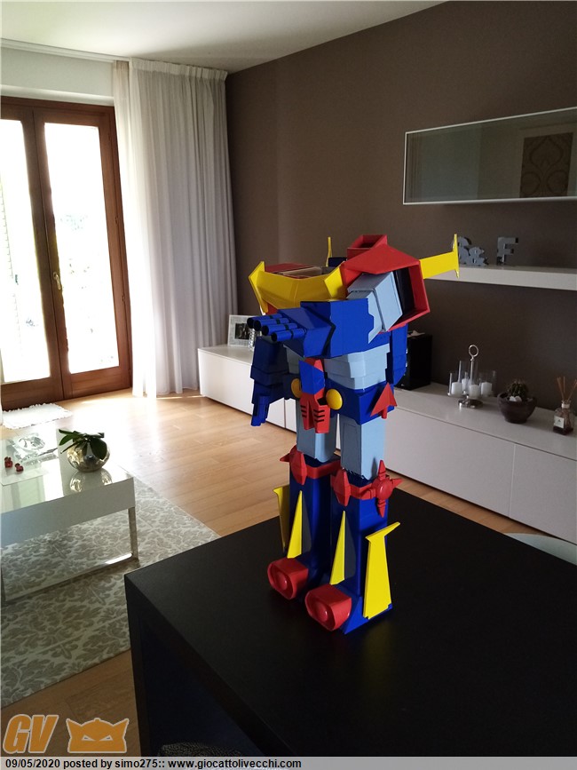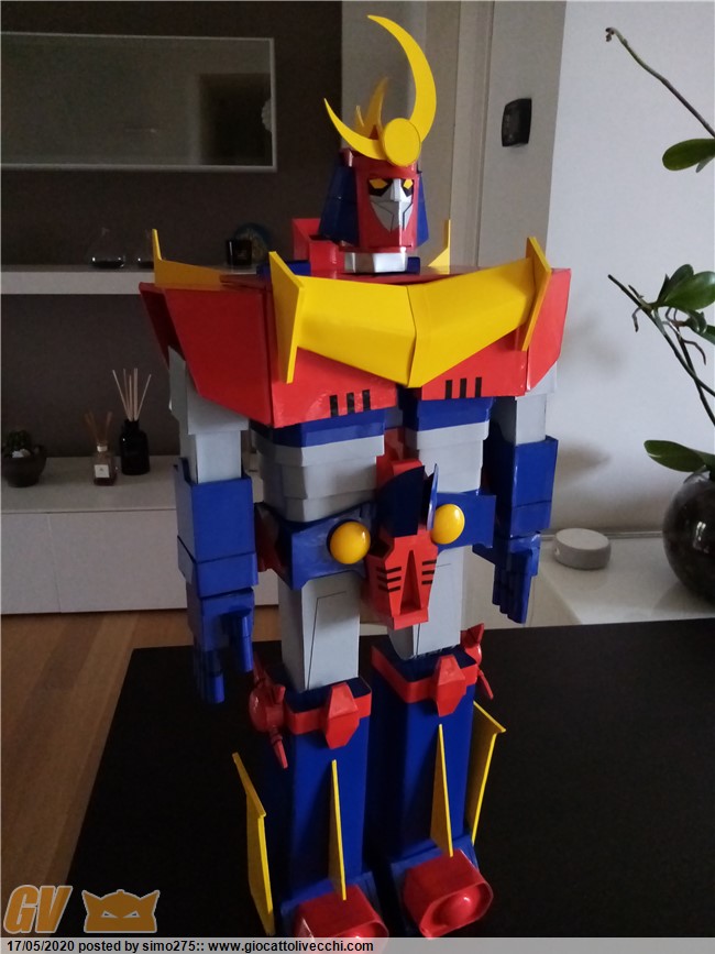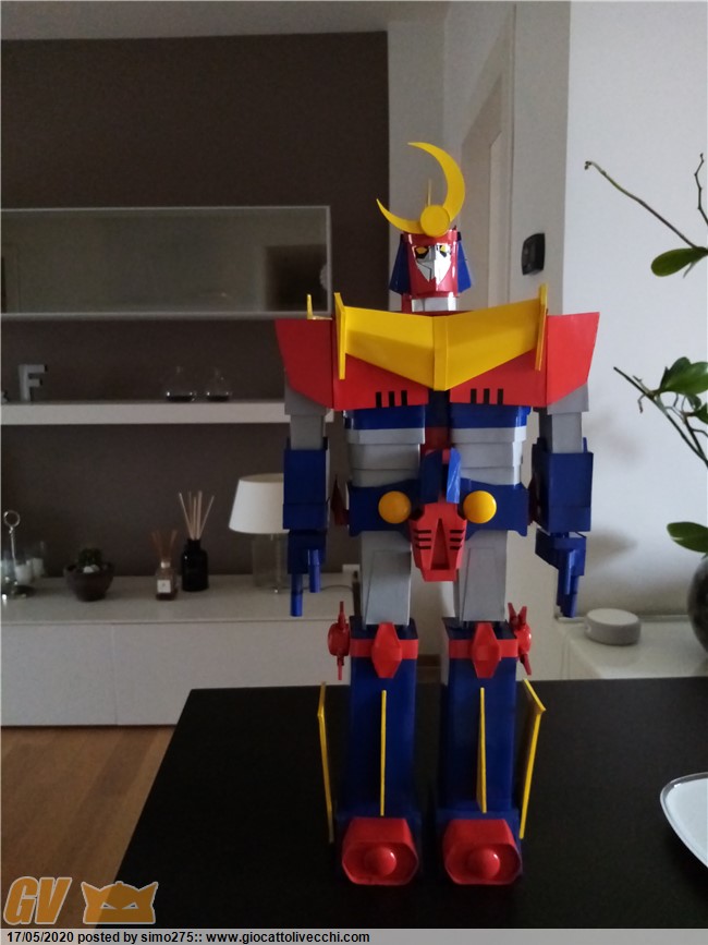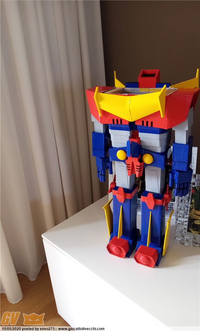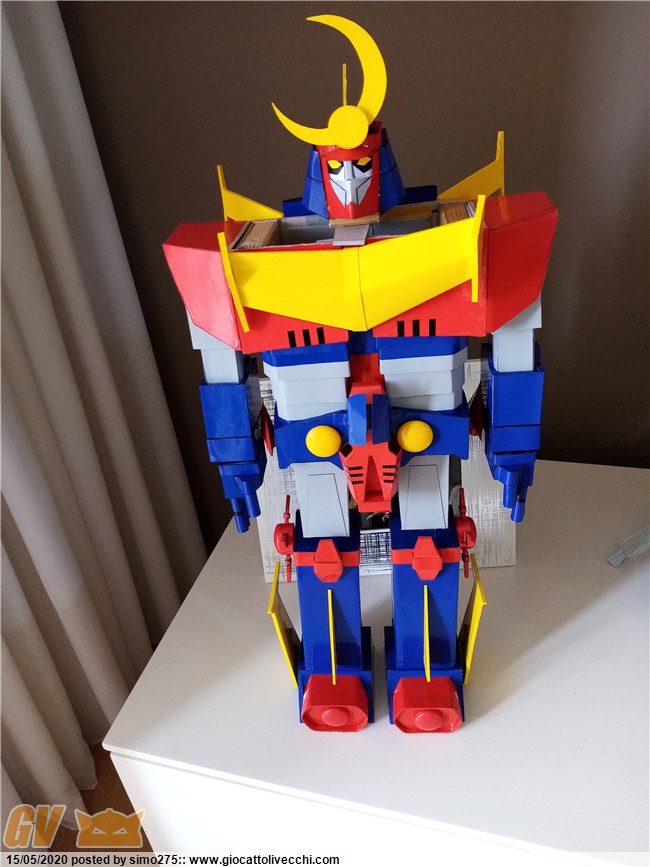 Scusate il ritardo ma essendo tornato a lavoro non ho potuto dedicarmi a terminare Zambot. Comunque ora è finito e ho fatto foto dei 4 modelli realizzati ed allineati in base all`altezza Daitarn 3 alto 72 cm Trider e Zambot 65 cm Danguard 60 cm
