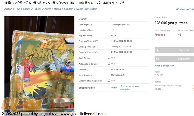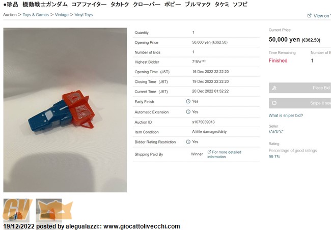 Vinili loose venduti in cinque aste distinte: Gundam 80, 100Yen Guntank 64, 999Yen Guncannon 44, 501Yen Core Fighter 80, 001Yen White Base 54, 999Yen