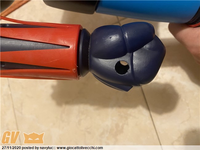 Il pugno per me è originale ma con un foro fatto erroneamente più in alto. In Italia le repro dei pugni vengano fatti in plastica piena (sulla parte finale del pugno) pesando quindi il doppio rispetto a uno originale. Non saprei chi In Francia e negli USA dove ci sono diverse (molte persone) che riproducono parti per jumbo se si sono ingegnati per farli in plastica vuota.