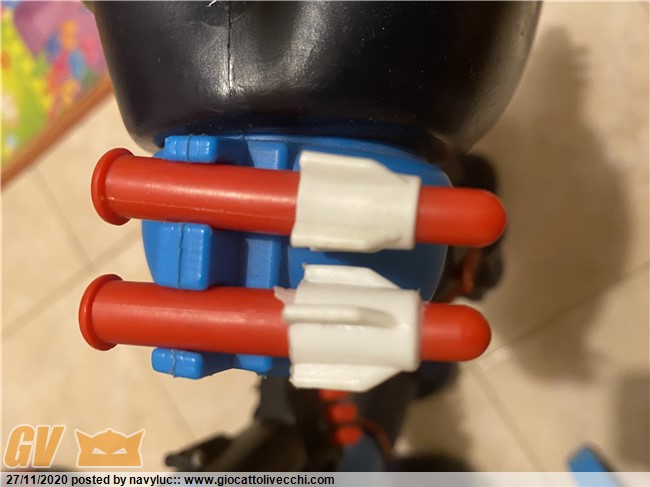 Mah senti la plastica rossa sembra proprio quella giusta. La parte bianca effettivamente sembra strana, non saprei. Può essere la prima sfornata della mattina con la plastica non ancora a temperatura ottimale. Quindi estrusa un po` male. Io di sbavature a missili del mattel ne ho visti ma con questa plastica ammosciata è solidificata mai.
