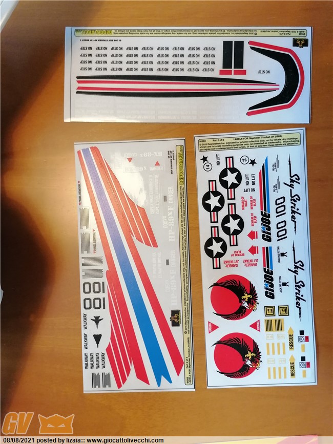 Ciao Fulvio. Io ti consiglio di non smontare mai i mezzi dei Gi joe perché le plastiche fragili sono sempre a rischio di rotture. Pulisci tutto senza smontare usando acqua e sapone liquido. Se intendi rimuovere la vecchia colla degli adesivi usa invece il classico alcool denaturato e un batuffolo di cotone. Gli adesivi repro li trovi di ottima qualità su toyhax.com dove c`è tutta una sezione dedicata ai mitici joe.