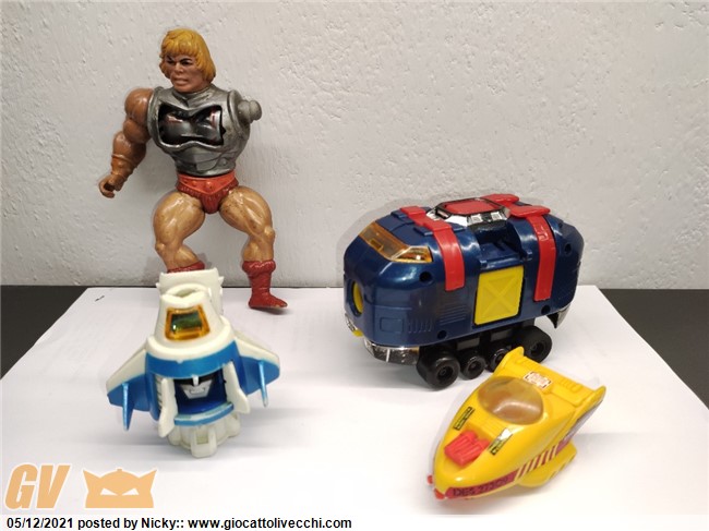 Ciao!! Prima foto devrobbe essere mezzo dei micronauti, seconda foto battlecat credo made in france a cui manca cinturino sella ed elmo direi messa così un 20 euro (se non ci sono rotture). 3a foto he man Battle armour senza un braccio. 4a macchine gattigher ma veramente irrecuperabili. A mio parere c`è solo la battlecat che puo essere recuperata e he man se trovi il braccio ma magari costa più la spedizone che il braccio... e poi dovrsti verificare se viene pulito dalle macchie sulle gambe che credo non vengano via e se il meccanismo del petto funziona. Gli altri non so..