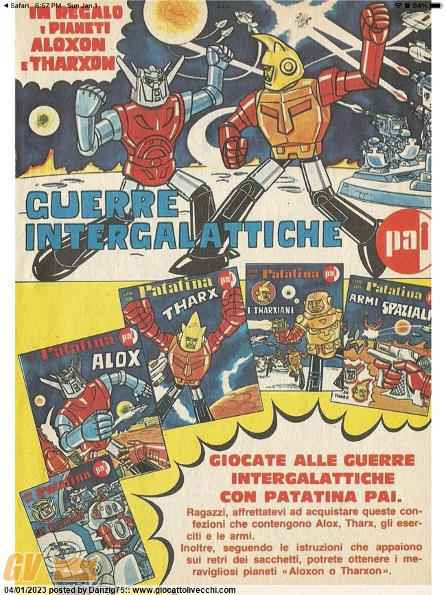 - Antefatti - Nel 1979 ero un bimbetto di quattro anni che aveva per eroe il Grande Mazinga e trascorreva i pomeriggi a vedere gli anime mangiando patatine; fu proprio allora che Pai se ne uscì con un`idea entusiasmante per un soggetto come me. La Pai propose infatti una serie di gadgets a tema robotico come sorpresine nei sacchetti di patatine, strizzando l`occhio al recente interesse dei ragazzini per a) - gli anime giapponesi b) - i Film di george Lucas, cercando sostanzialmente di prendere i proverbiali due piccioni con una singola phava.