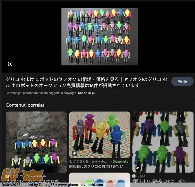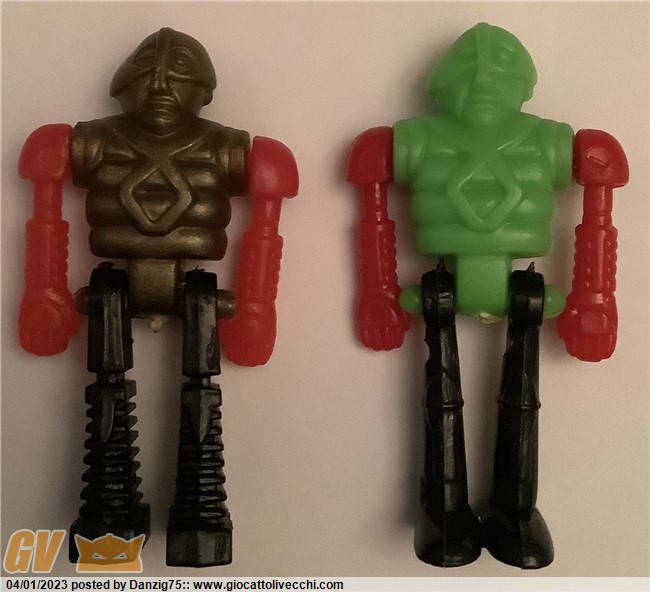 Paragone tra un robottino italiano e il corrispondente (Fluo) giapponese, lo stampo è lo stesso; nell`altra foto si vedono i quattro colori italiani