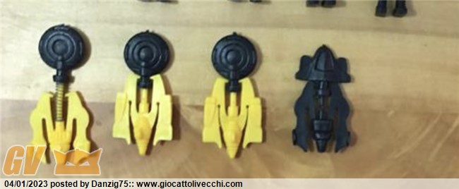 - C`erano poi le astronavi di Aloxiani e Tharxiani che non ricordo più in quale sacchetto si trovassero, probabilmente in quelli rispettivamente di Alox e Tharx (qualcuno si ricorda?). Io ho posseduto solo la nave Aloxiana che presentava un curioso buco vuoto sotto lo scafo, mentre vedo che quella postata dall`Utente Grillo Parlante qui su GV contiene una biglia per farla muovere similmente a certi giochini della Kinder dello stesso periodo.