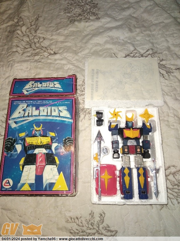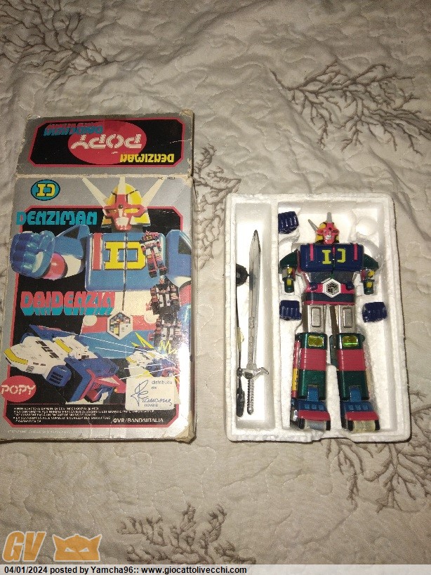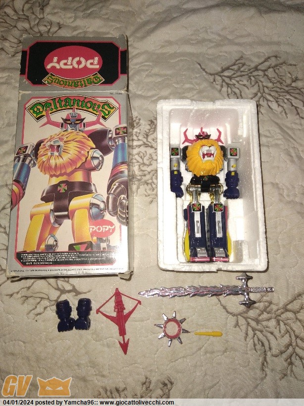 al denziman manca un cornino, l`arma è attaccata con lo scotch.manca un pungo, un pezzo a forma di boomerang e le istruzioni.buono per la spada e il box...