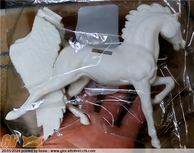 Linea di giocattoli che ho scoperto da non molto tempo. Davvero interessante ma che purtroppo non ha avuto un grande seguito con pochissimi personaggi e creature prodotte. Pegaso, in questo caso, mi ha subito colpito. Linee essenziali e proporzioni quasi perfette con una livrea monocromatica che lo fa sembrare una piccola scultura di marmo. Allego foto con le ali montate in tutto il suo splendore!