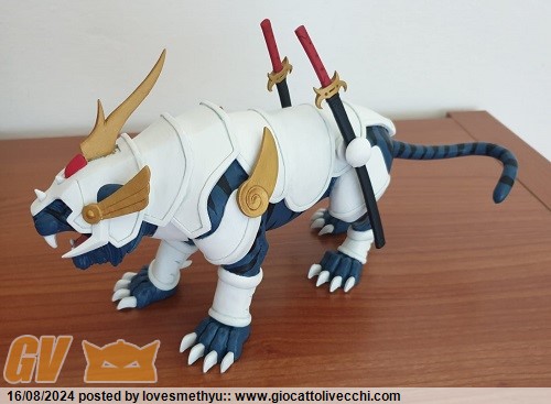 Dopo Iron dell`uomo tigre , mi sono lanciato sulla trasformazione di un altro felino, Fiamma bianca dei 5 samurai, che poi in questa versione dovrebbe chiamarsi fiamma nera, che Ryo incontrò quando gli si spezzarono le sue spade e si scontrò con un cavaliere che possedeva le spade del fervore sull`armatura di fiamma nera appunto..., ma vabhè, vado di memoria.... La base è sempre la tigre dei masters 2002 , e dopo applicata l`armatura e colorata. é già un bel pò che l`ho fatta, ma nn avevo mai tempo di postarla. Sono molto orgoglioso di questo lavoretto fatto con il mio amico modellista. Con l`action figure della bandai fa la sua porca figura, anche perchè le proporzioni rispecchiano la serie tv proprio come piace a me.