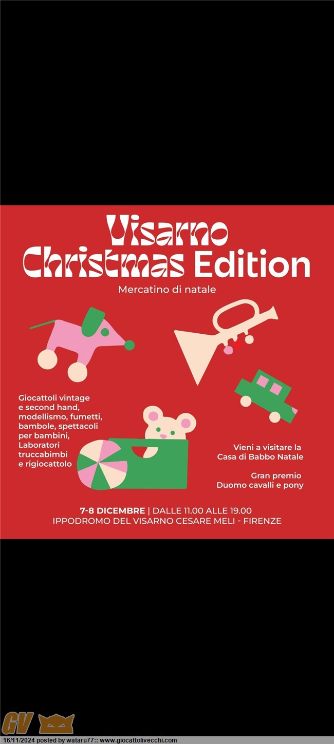 Ciao a tutti per questo evento stanno cercando banchi con giocattoli vintage per il loro mercatino di Natale. Posto la locandina dell`evento. 50€ per 2 giorni per esporre il proprio banco. Saluti a tutti.