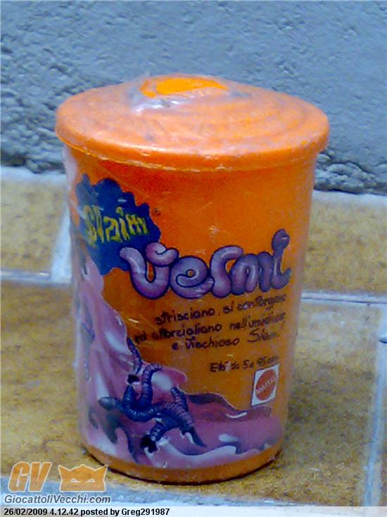 Come da titolo, valuto offerte per una POSSIBILE/PROBABILE FUTURA VENDITA, per questa chicca: un raro esemplare di SLAIM VERMI di casa Mattel, datato 1977.. Evvene si, 32 anni di storia, e il barattolo è ancora sigillato. Inutile dire che il contenuto all`interno è perfettamente rimasto tale come nuovo (all`agitare del barattolo si sente il rumore "fresco" e gelatinoso dello slime!). Valuto quindi le vostre offerte in questo post o in privato alla mia e-mail: formica1987@virgilio.it