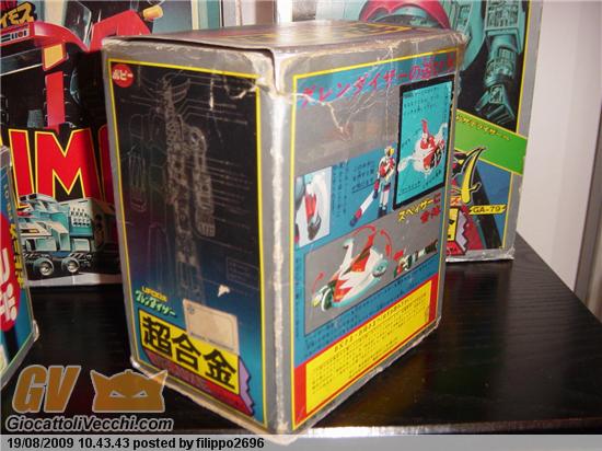 grandizer e scatola prima versione....disco 3° versione... fossi in te venderei la scatola apparte che un 100 euro li vale sicuro....se c`è il poli anche 130... e poi il goldrake loose che un altri 120/130 euro ce li fai...
